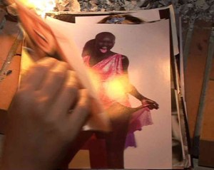 Chez Sémiose, une installation vidéo hypnotique de Céline Duval (Les Allumeuses). Au coin de la cheminée, l’artiste effeuille des images prélevées dans la presse féminine. Chaque moniteur propose l’effeuillage d’une collection d’images différente (femmes avec arbres, femmes se tenant les talons, etc.) comme autant de poses absurdes proposées par l’iconographie des magazines. Et soudain, on se remémore nos cours d’histoire de l’art ; celui avec le prof collectionneur de diapos où – bercés au clic-clac du carrousel – nous rêvions à une explosion de l’appareil de torture qui provoquerait l’Armageddon qui éradiquerait toutes les « Vierges à l’enfant » de la surface du globe… Belzébuth!