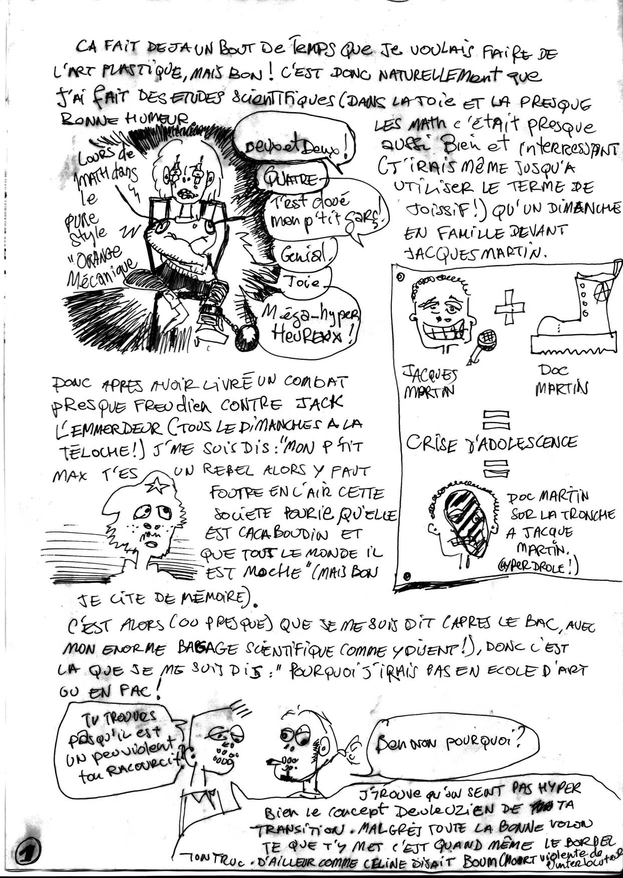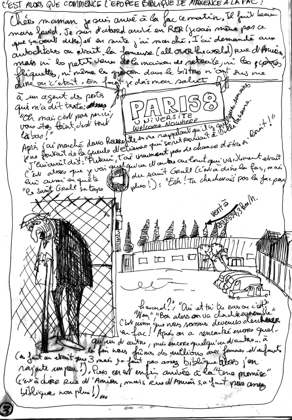 En rangeant mes affaires, j’ai retrouvé cette bédé réalusée alors que j’entrais à la fac à la fin des années 1990. A l’époque, on avait cours « rue d’Amien » dans des préfas parachutés dans une annexe de Paris 8 située à Stains (tout un programme) avec des profs aussi variés que Nina Childress, Thomas Hirshhorn, Jean-Charles Massera, Wang Du, Christophe Domino, Antoine Moreau, Guy Tortosa, etc…