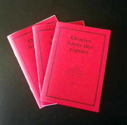 Oracles hauts des espoirs est une expérience de divination par cafédomancie menée par Max Fécamp entre le 21 novembre et le 21 décembre 2011. L’artiste propose une interprétation des événements qui se dérouleront durant le mois menant à la supposée fin du monde selon le célèbre calendrier maya. Bien qu’ironique au premier abord, ce livre d’artiste n’en est pas moins une réflexion sur l’interprétation des signes en général (de l’esthétique à la critique d’art) jusqu’au livre d’artiste en tant que tel.