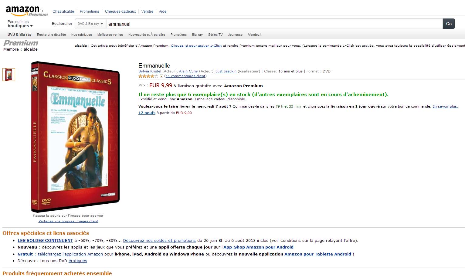 A tout hasard, je tape le titre d’un classique de la pornographie histoire de voir si Amazon est réellement plus vertueux que moi : Emmanuelle… évidemment disponible (sans aucun sous-entendu graveleux !) :