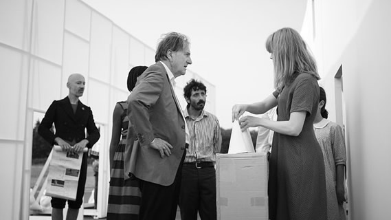Le communiqué de presse fait référence à Alice au Pays des Merveilles, mais on est confronté à quelque chose de bien plus étrange, une sorte d’uchronie qui nous projette tour à tour dans un 20e siècle quasi pré-moderne et au moyen âge, dans une ville d’un expressionnisme lumineux puis à la campagne, dans la vie et sur scène… Avec Die Straβe, Ulla Von Brandenburg signe un petit bijou ! Cerise sur le gâteau, elle réussit le tour de force d’aménager l’espace du rêve sans avoir recours au pathos habituellement associé à ce genre d’évocations[1].