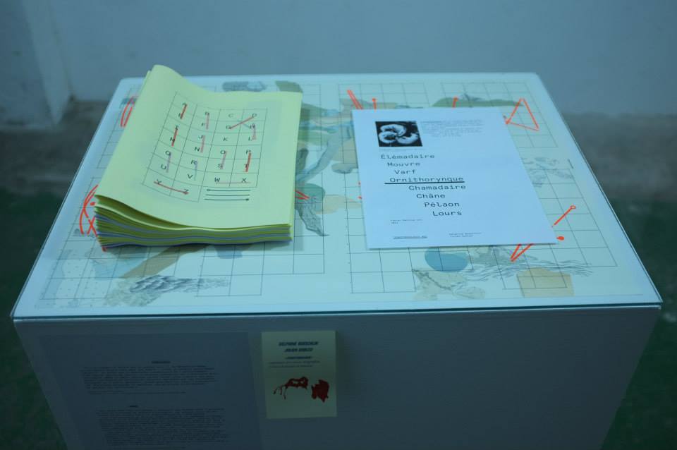 Autre pièce jouant sur une forme de désorientation, Territoriologie de Delphine Boeschlin et Julien Gobled. Le duo reprend les interrogations sur la cartographie et son rapport à l’échelle. Ici, la carte est l’occasion d’un jeu avec tout ce qui constitue le métatexte cartographique. Les courbes de niveau, le découpage des cotes, le quadrillage, tout est mis au même niveau vers la recherche d’une sorte de carte primordiale : une carte sans autre objet qu’elle-même. Mais cette carte primordiale n’a rien d’une absurdité chère à Lewis Carol avec sa carte à l’échelle 1/1 : ici ce n’est pas une réduction, mais une prolifération qui est à l’œuvre.
