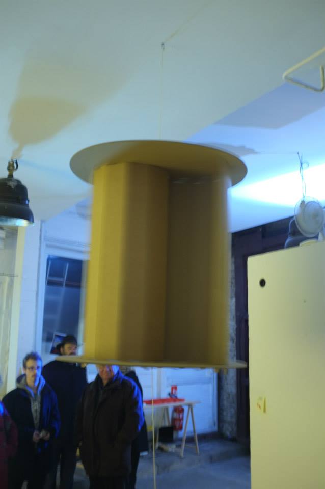 Même si elle est un peu à part dans « Papier Machine 3 », l’éolienne conçue par Mathieu Roquet et Arslan Smirnov reste parmi les pièces les plus marquantes de cette édition. Il s’agit d’un prototype fonctionnel en carton d’une éolienne domestique (sur le modèle d’un rotor Savonius). Facile à monter et à mettre en place, elle serait à même de fournir l’énergie électrique nécessaire à une petite exposition. Cet objet envisage qu’une exposition d’art contemporain puisse tendre vers l’autonomie énergétique. En creux, elle souligne que même si de nombreux artistes contemporains interrogent notre impact sur la nature, ils ne questionnent que rarement celui de l’art contemporain sur l’écosystème…