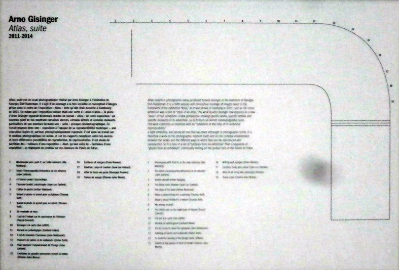Ce qui frappe, dans cette présentation, est l’impression d’absence de hiérarchie entre les images. Les photos de Gisinger font toutes à peu près de la même taille et semblent se dérouler comme un carrousel sur les murs du Palais de Tokyo. Même si on ne comprend pas bien l’utilité de ce type de présentation (pourquoi comme ça plutôt que sous forme de livre, de diaporama, etc.), l’accrochage fonctionne bien : on s’arrête sur certaines images, d’autres nous interpellent, d’autres encore — presque illisibles et abstraites — offrent une respiration dans cet ensemble.
