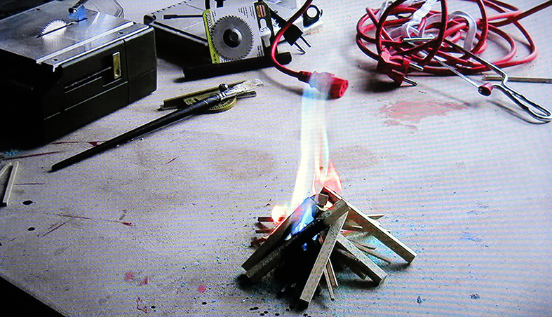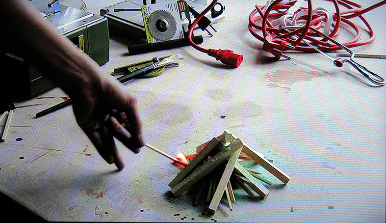 Sur son trajet, le Petit Poucet croise des bonshommes bizarres qui se mettent les mains devant les yeux et ça fait de la lumière (Clément Cogitore). « Pratique ! » se dit-il « si j’avais ça, je pourrai lire CQ au lit, ça fera un peu moins chier les frangins lorsque je laisse la lumière allumée.».