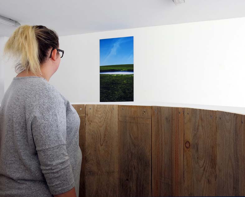 Dans son enfance, Brice Dupont est bercé par les récits de ses grands-parents racontant les années de guerre qui ont façonné les paysages et les gens de la côte normande. Comme nombre de ses camarades de la région, les bunkers sont son terrain de jeu et c’est sur l’évocation de ces paysages que s’ouvre l’exposition. En guise d’introduction, la voie grave et rassurante du narrateur, diffusée par hauts parleurs dans le couloir du Portique, raconte la construction d’un bunker et d’une station radar en Normandie. L’artiste a collecté ce témoignage auprès d’un ancien qui a participé à ce chantier, puis a refait jouer le texte par un acteur afin d’en gommer l’affect et l’inscription temporelle. D’emblée, tout renvoie aux usages de la muséographie historique, aux habitudes scénographiques des mémorial discursifs destinés à plonger le visiteur dans une ambiance historique plus que dans une réalité toujours trop complexe. Alors, tout au long de l’exposition, Brice Dupont n’aura de cesse de brouiller les pistes spatio-temporelle, de faire se rencontrer et se fondre le passé et le présent, d’éclater un territoire pour en révéler sa fatale entropie.